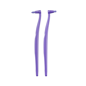 4 сменные насадки-головки с 2 видами подрезки щетины позволяют использовать монопучок как для межзубных промежутков, так и для боковых и жевательных поверхностей зубов. Головка с заостренной подрезкой щетины проникает в узкие межзубные промежутки, а головка с закругленной щетиной имеет большую площадь соприкосновения с боковой и жевательной поверхностями зуба. Эргономичная ручка монопучка сконструирована так, чтобы можно было вкручивать головку с щетиной с двух сторон – для подбора удобного угла расположения монопучка при гигиене полости рта.