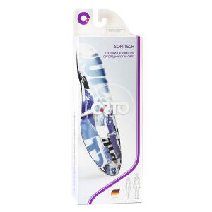 Ортопедические стельки ORTO Soft Tech со стандартной формой носка выполнены из материала, который способен запоминать форму (Мemopur®) и имеют мало выраженный анатомический рельеф и чашеобразную пятку. Верхняя поверхность стельки выполнена из абсорбирующей износоустойчивой ткани.