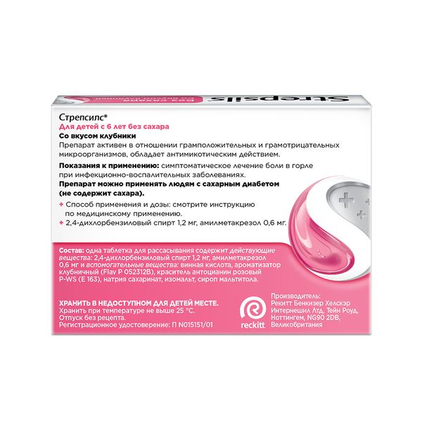 Стрепсилс таблетки для рассасывания клубничные для детей с 6 лет №16