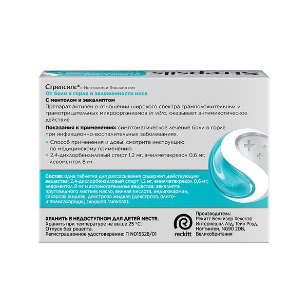 Стрепсилс таблетки для рассасывания с ментолом и эвкалиптом №24