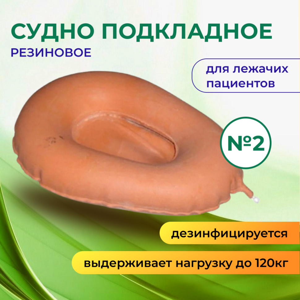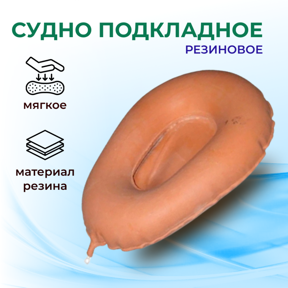 Судно подкладное резиновое предназначено для ухода за больными как в больницах, так и в домашних условиях. Применяется для испражнений, мочеиспускания или проведения клизм в кровати, когда больной не может передвигаться и самостоятельно испражняться в туалете, также можно использовать при недержанием мочи.