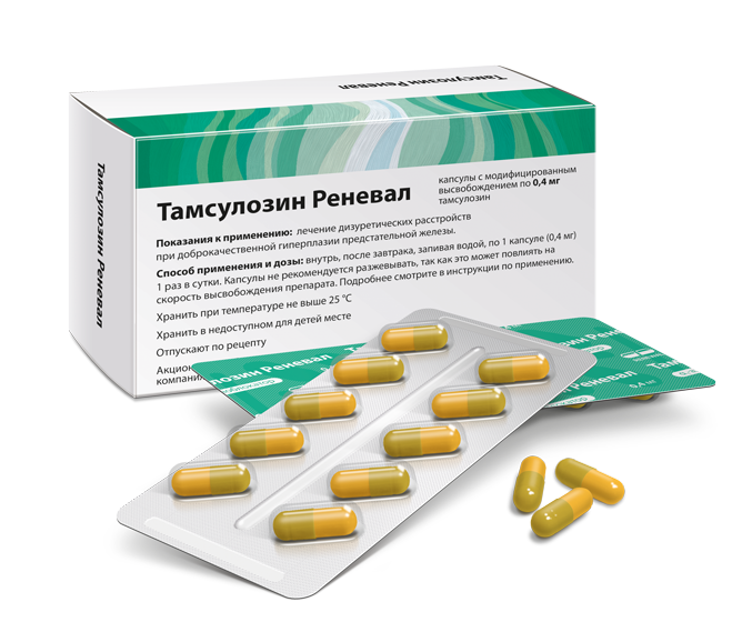 Тамсулозин Реневал капсулы кишечнорастворимые с пролонгированным высвобождением 0,4мг №30