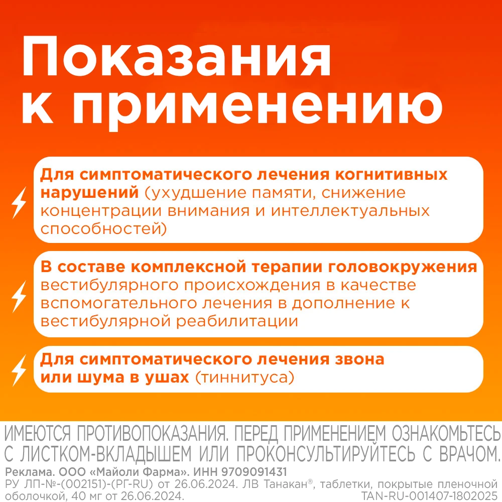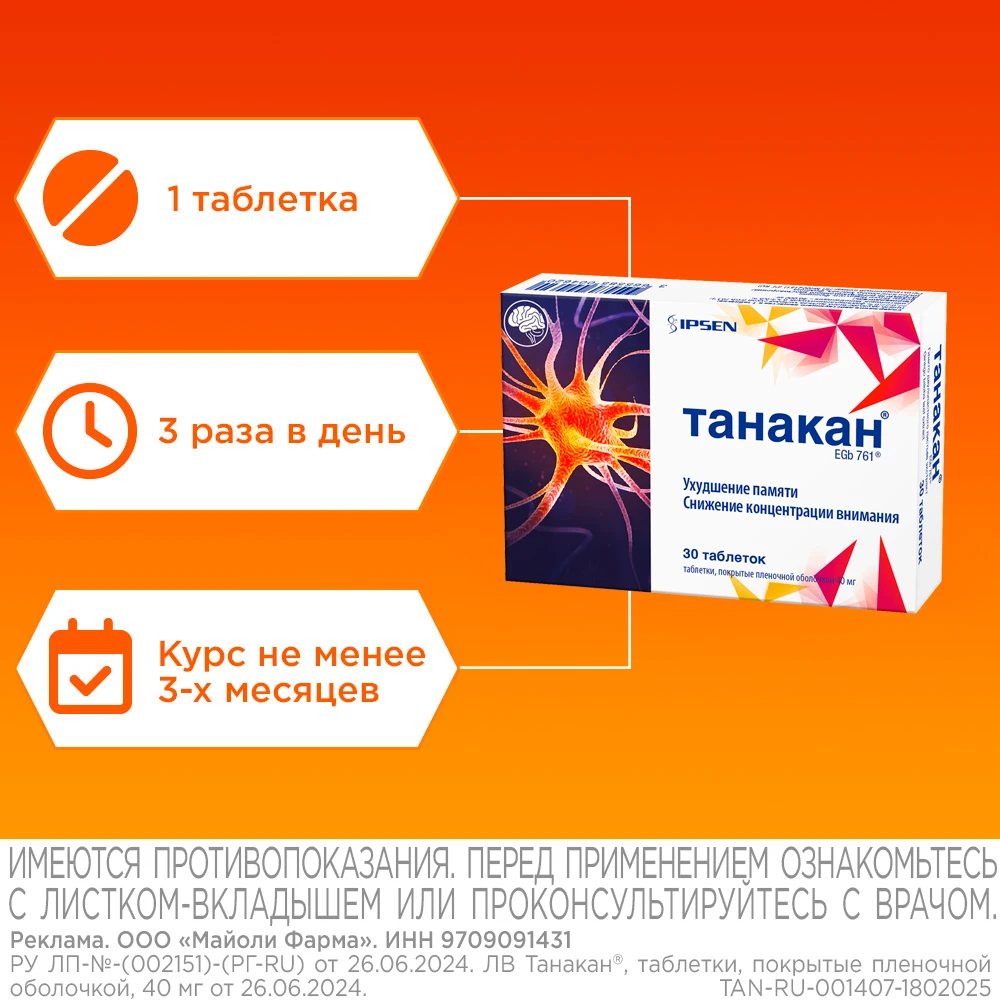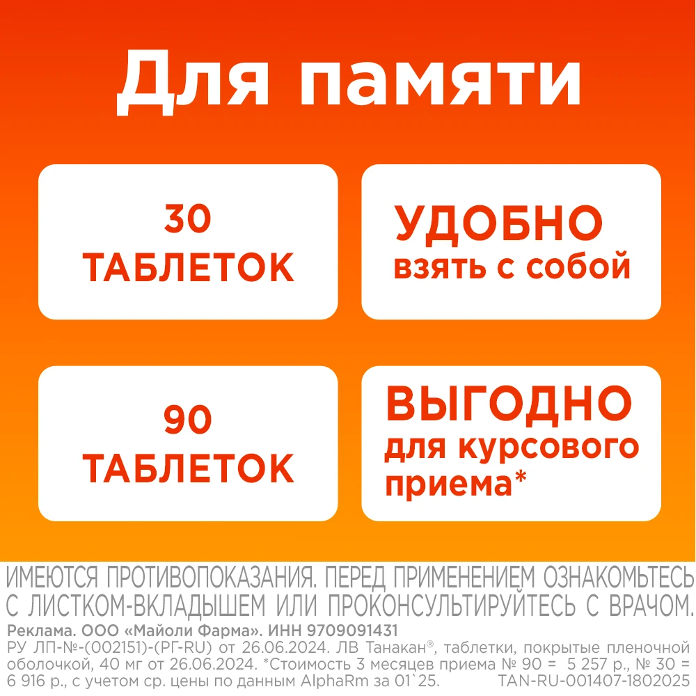 Танакан таблетки покрытые плёночной оболочкой 40мг №90