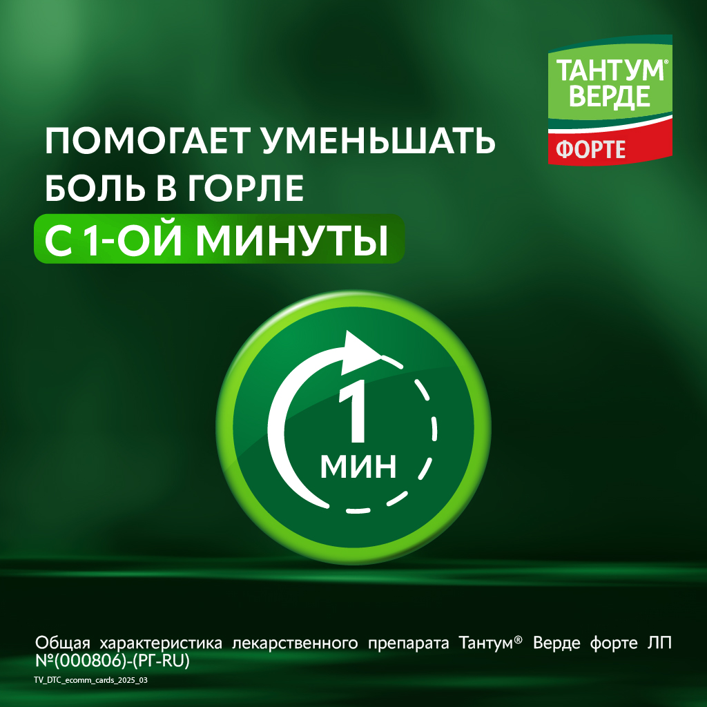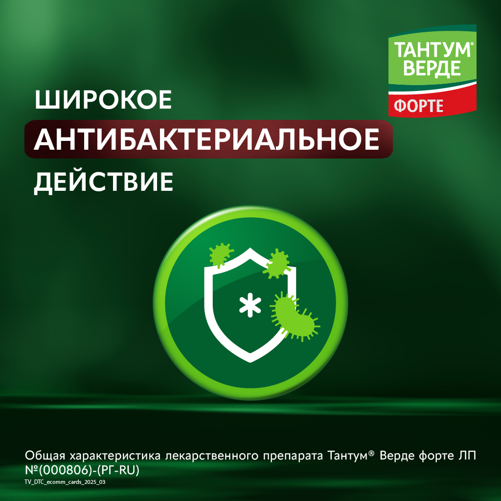 При применении препарата Тантум® Верде Форте возможно развитие реакций гиперчувствительности. В этом случае рекомендуется прекратить лечение и проконсультироваться с врачом для назначения соответствующей терапии. При наличии язвенного поражения слизистой оболочки ротоглотки пациент должен обратиться к врачу, если симптомы сохраняются в течение более трех дней. Применение препарата Тантум® Верде Форте не рекомендуется у пациентов с повышенной чувствительностью к ацетилсалициловой кислоте или другим нестероидным противовоспалительным препаратам. Препарат Тантум® Верде Форте должен с осторожностью применяться у пациентов с бронхиальной астмой в анамнезе по причине возможности развития у них бронхоспазма на фоне приема препарата. Препарат Тантум® Верде Форте содержит метилпарагидроксибензоат, который может вызывать аллергические реакции.