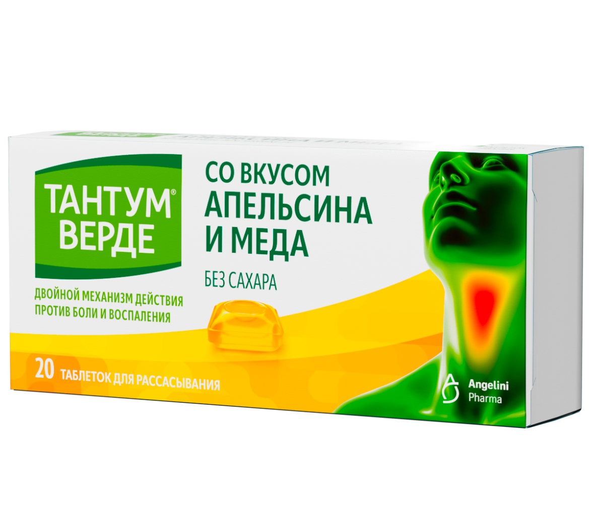 Тантум Верде таблетки для рассасывания со вкусом апельсина и мёда 3мг №20