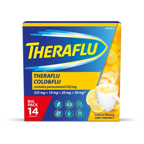 ТераФлю порошок для приготовления раствора для приема внутрь со вкусом лимона 325мг+10мг+20мг+50мг пакетики 22,1г №14