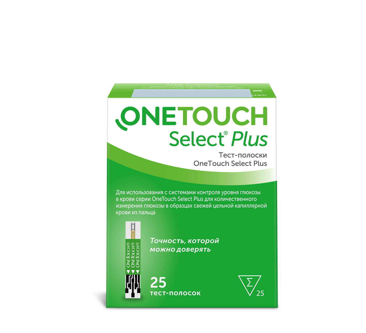 Тест-полоски OneTouch Select® Plus предназначены для использования с глюкометром OneTouch Select® Plus или OneTouch Select Plus Flex® для количественного измерения глюкозы (сахара) в образцах свежей цельной капиллярной крови из пальца.