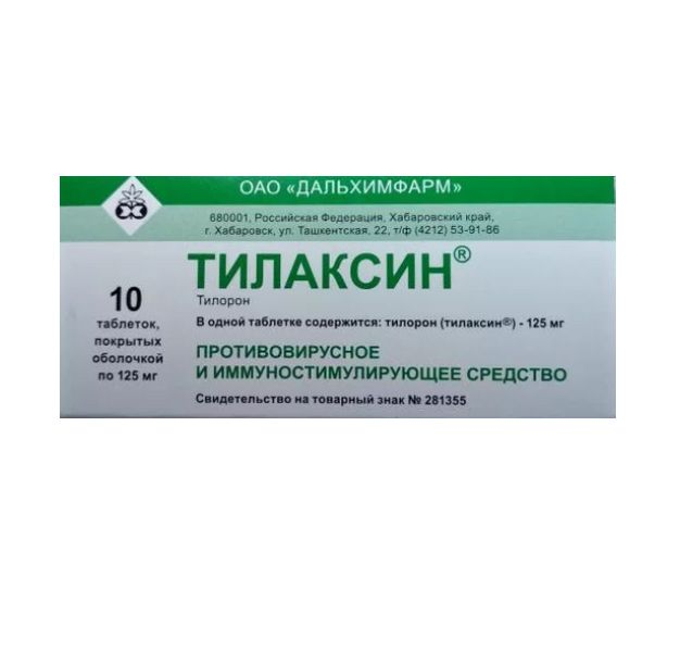 Действующее вещество: тилорон (тилаксин®) — 125,000 мг.