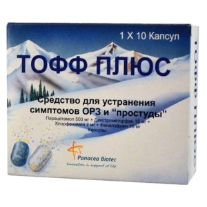 активные вещества: парацетамол 500,00 мг, декстрометорфана гидробромид 15,00 мг, хлорфенамина малеат 2,00 мг, фенилэфрина гидрохлорид 10,00 мг