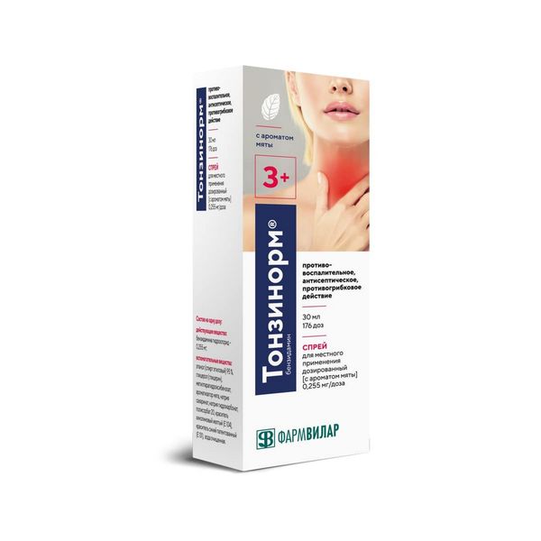Тонзинорм спрей для местного применения дозированный 0,255мг/доза флакон 30мл /176доз/