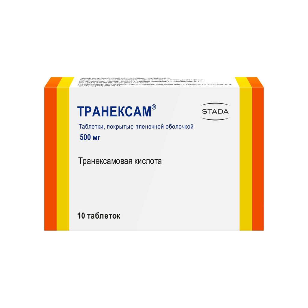 Активное вещество — Транексамовая кислота 500 мг,