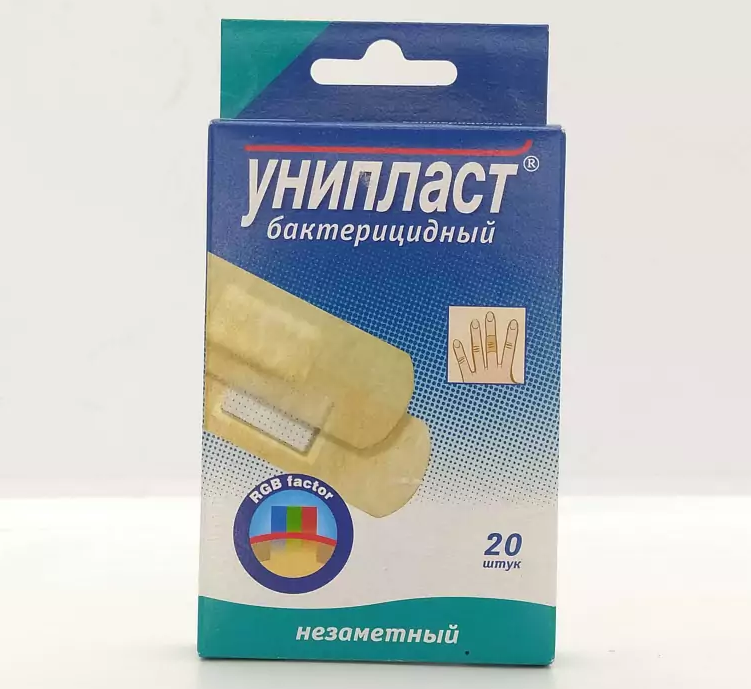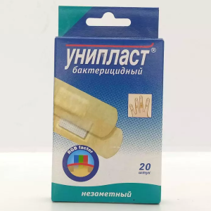 Описание принципа действия: Лейкопластырь «Унипласт бактерицидный» - наружное антисептическое перевязочное средство. Прикрепленная к липкой основе и пропитанная раствором хлоргексидина биглюконата прокладка, накладывается на рану и оказывает антисептическое действие.