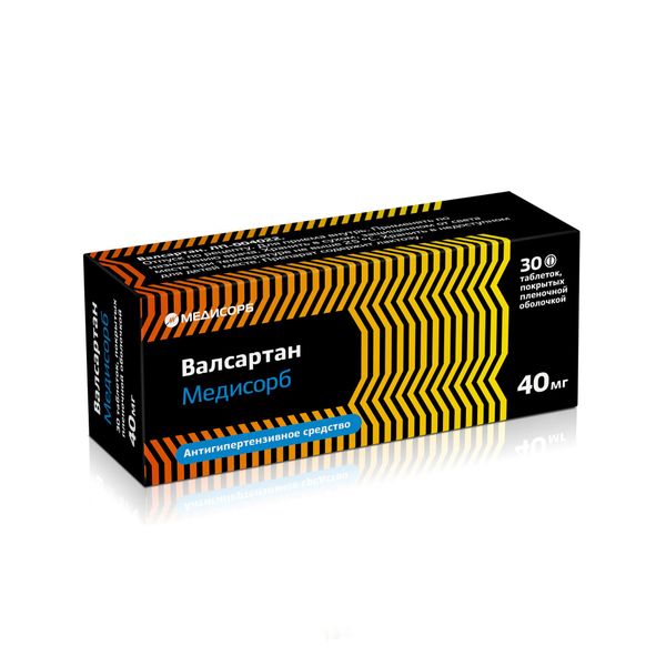 Валсартан Медисорб таблетки покрытые плёночной оболочкой 40мг №30
