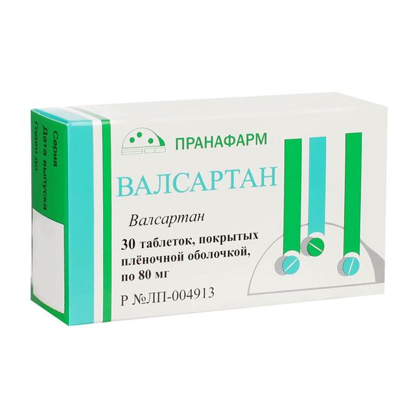 Валсартан таблетки покрытые плёночной оболочкой 80мг №30