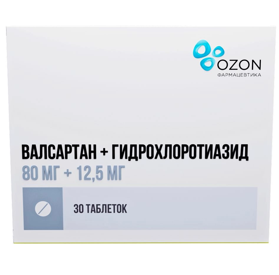 Действующие вещества: валсартан — 80,00 мг гидрохлоротиазид — 12,50 мг