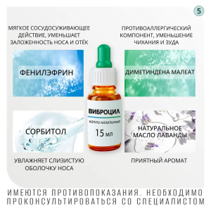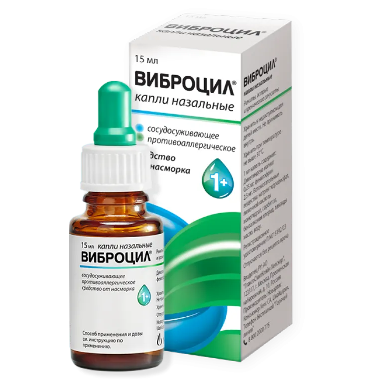 Виброцил® — комбинированный препарат, содержащий фенилэфрин и диметинден. Фенилэфрин — симпатомиметическое средство, при местном применении оказывает умеренное сосудосуживающее действие (за счёт стимуляции альфа1-адренорецепторов, расположенных в венозных сосудах слизистой оболочки носа), устраняет отёк слизистой оболочки носа и его придаточных пазух.