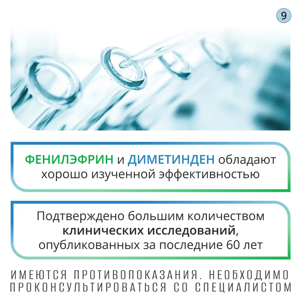 Активные вещества: фенилэфрин 2,5 мг, диметиндена малеат 0,25 мг.