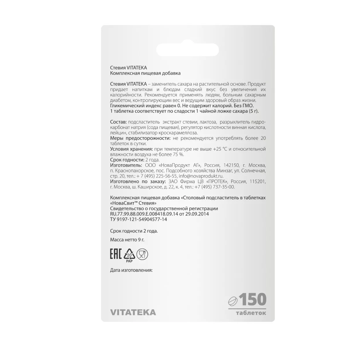 Витатека Подсластитель Стевия таблетки №150