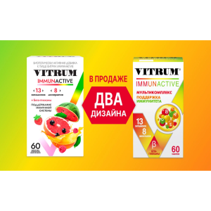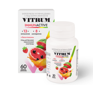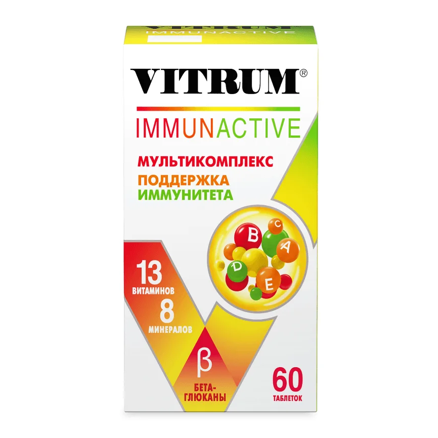 Витаминно-минеральный комплекс ВИТРУМ ИММУНАКТИВ VITRUM IMMUNACTIVE содержит 13 витаминов и 8 минералов, а также бета-глюканы и биофлаваноидный комплекс — необходимые компоненты, которые синергично работают для поддержки иммунитета: