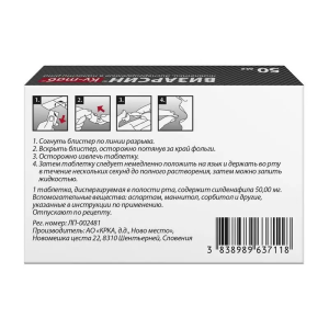 Таблетки диспергируемые в полости рта хрупкие, поэтому их не следует выдавливать через фольгу упаковки, т. к. они могут сломаться. Не следует брать таблетку мокрыми руками, т. к. таблетка может начать растворяться.