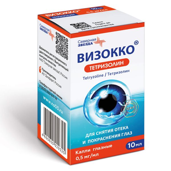 Визокко Тетризолин капли глазные 0,5мг/мл флакон-капельница 10мл