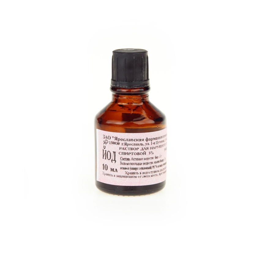 Активное вещество: йод — 5 г вспомогательные вещества: калия йодид — 2 г, этанол (спирт этиловый) 95 % и вода очищенная — поровну до 100 мл.