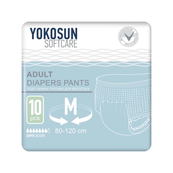 Yokosun подгузники-трусики для взрослых размер М /объем талии 80-120см/ №10