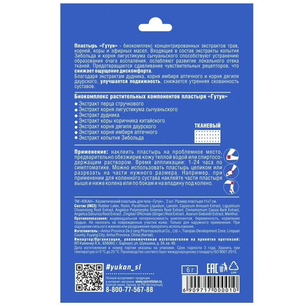 Юкан пластырь Гутун для суставов №2
