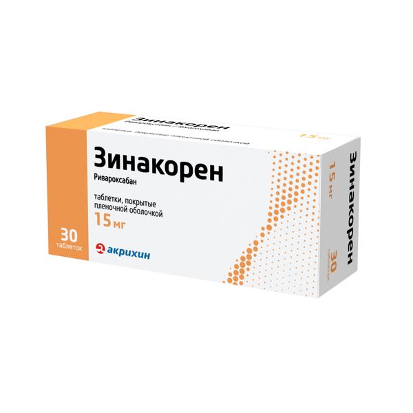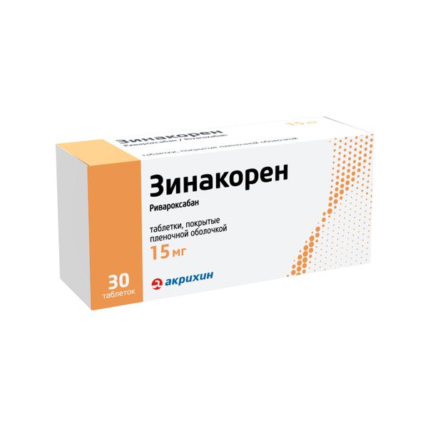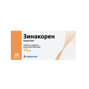 Препарат Зинакорен содержит действующее вещество — ривароксабан, который относится к антитромботическим средствам (антикоагулянтам), т.е. лекарственным препаратам, блокирующим образование тромбов. Его действие основано на подавлении фактора свёртывания крови (прямой ингибитор фактора Ха) и снижении образования тромбина, что приводит к уменьшению формирования тромбов в кровеносных сосудах.